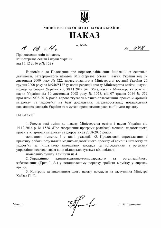 (Наказ Міністерства освіти і
