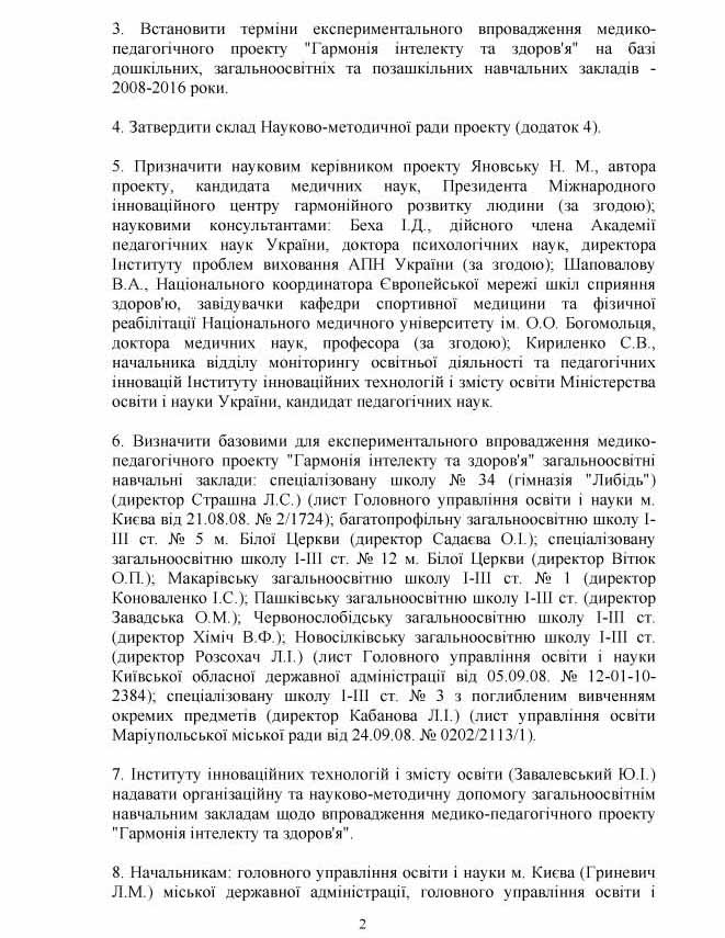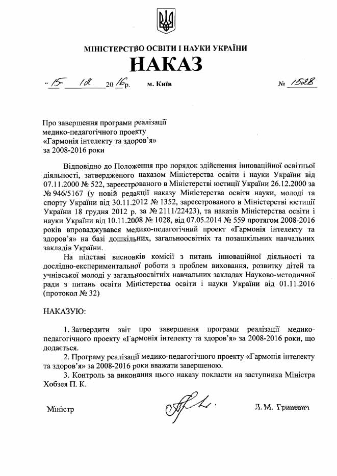 Гармонія інтелекту та здоров’я" за 2008–2016